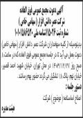 روزنامه ابرار آگهی مجمع عمومی شرکت پارسیان تابلو آریا آگهی