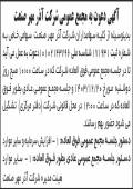 روزنامه ابرار آگهی دعوت به مجمع شرکت آذر مهر صنعت آگهی دعوت