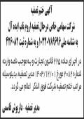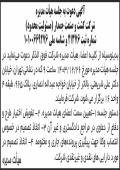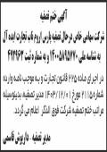 روزنامه ابرار آگهی مفقودی پروانه بهره برداری المثنی مفقودی