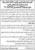 روزنامه ابرار آگهی دعوت به مجمع سالیانه شرکت لیزینگ رازی