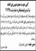 روزنامه ابرار آگهی مجمع عمومی شرکت پترو کیمیا سپاهان آگهی