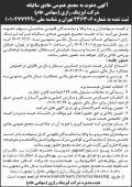 آگهی دعوت مجمع عمومی عادی به سالیانه صاحبان سهام شرکت