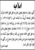 اصلاحیه آگهی دعوت به مجمع عمومی عادی به طور فوق العاده شرکت