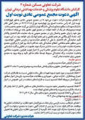 روزنامه ایران آگهی نوبت اول دعوت به مجمع تعاونی مسکن کارکنان