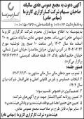 روزنامه اطلاعات آگهی مجمع سالیانه شرکت ریخته گری